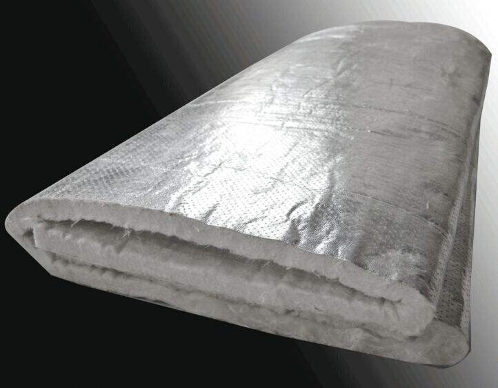 云緯覆鋁箔針刺毯是在現(xiàn)有陶瓷纖維計(jì)刺毯的基礎(chǔ)上利用專用機(jī)械,通過(guò)專用粘結(jié)劑將金屬鋁箔平整地覆到針刺毯表面形成的一種復(fù)合產(chǎn)品。由于在針刺毯表面增加了一層致密 的金屬鋁箔層,有效屏蔽了熱量透過(guò)纖維毯向空氣的對(duì)流,對(duì)輻射熱量形成有效反射,從而極大地提高了產(chǎn)品的絕熱性能。